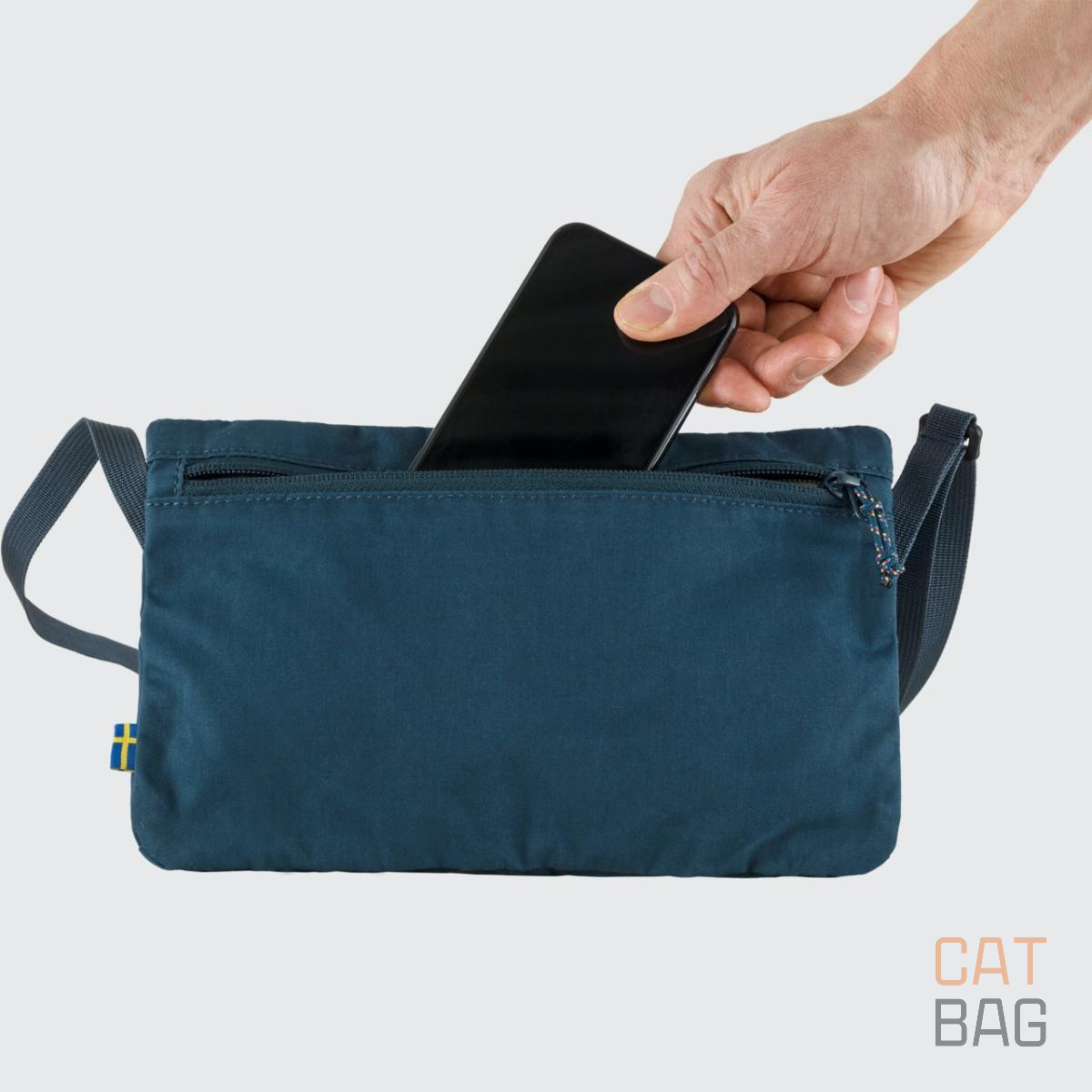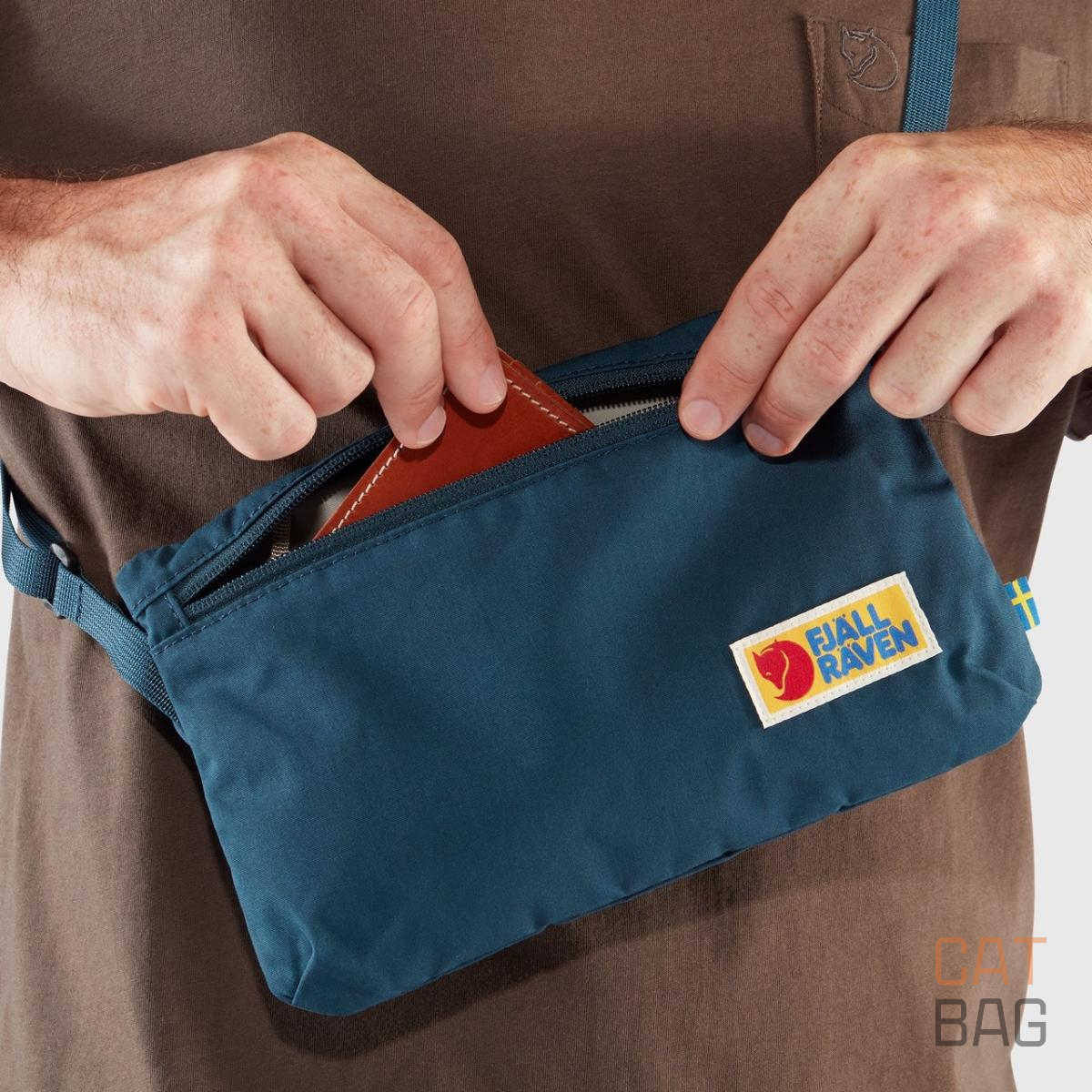 Pequeña bolsa ( neceser, riñonera ) práctica con correa ajustable para el hombro. Producido sin PFAS.